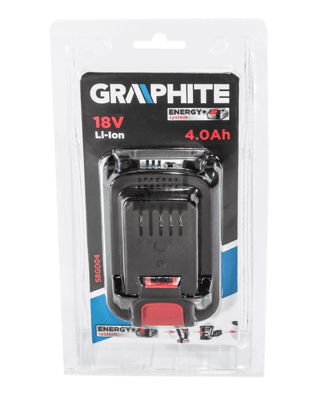 Akumulator GRAPHITE Energy+ 18V, Li-Ion o pojemności 4.0Ah. Z możliwością doładowywania bez ryzyka utraty pojemności.