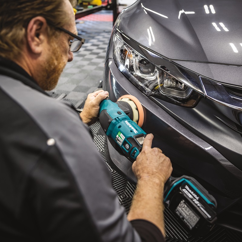 Akumulatorowa polerka DPO600RTE Makita umożliwia dokładne polerowanie powierzchni. Sprawdzi się w branży motoryzacyjnej. Została wyposażona w 4 tryby pracy: oscylacja wymuszona, oscylacja bezwładnościowa, tryb normalny i tryb wykończenia. Polerka DPO600 to model bezszczotkowy w związku z czym odznacza się kompaktową konstrukcją, wysoką wydajnością i dłuższym czasem pracy na jednym naładowaniu akumulatora. Narzędzie jest poręczne, dzięki czemu pewnie leży w dłoni podczas użytkowania. Opracowane w technologii XPT cechuje się zwiększoną odpornością na pył i wilgoć.