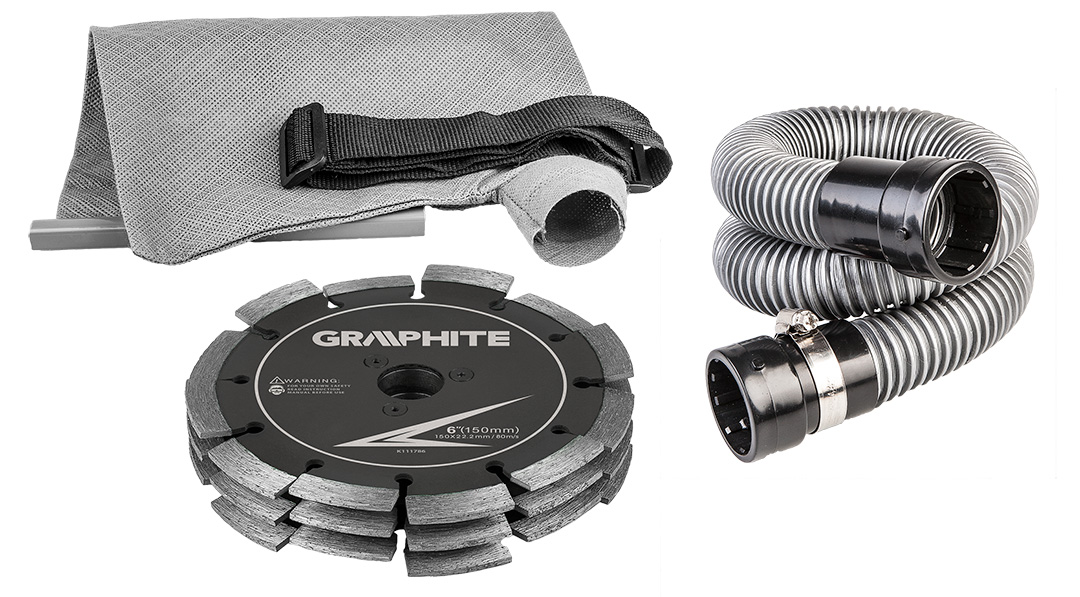 Bruzdownica posiada także wytrzymałe, metalowe rolki prowadzące oraz system odprowadzania pyłu.