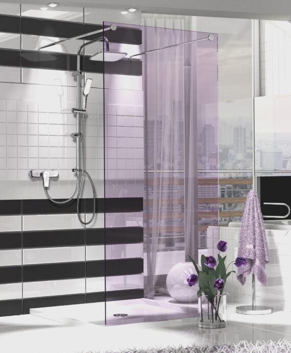 Biel połączona z chromem oraz subtelne, geoetryczne kształty nadadzą wdzięku łazie
