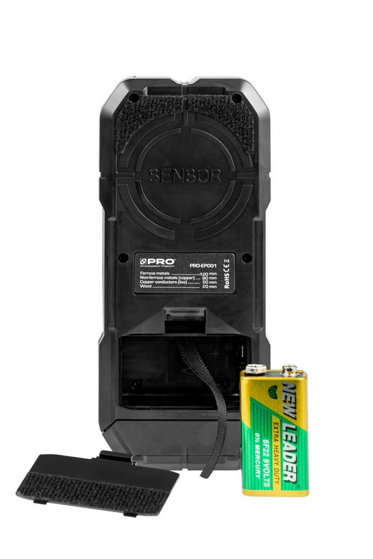Tył detektora pokryty miękkim materiałem zapobiegajcym uszkodzeniom zarówno badanej powierzchni roboczej jak i detektora