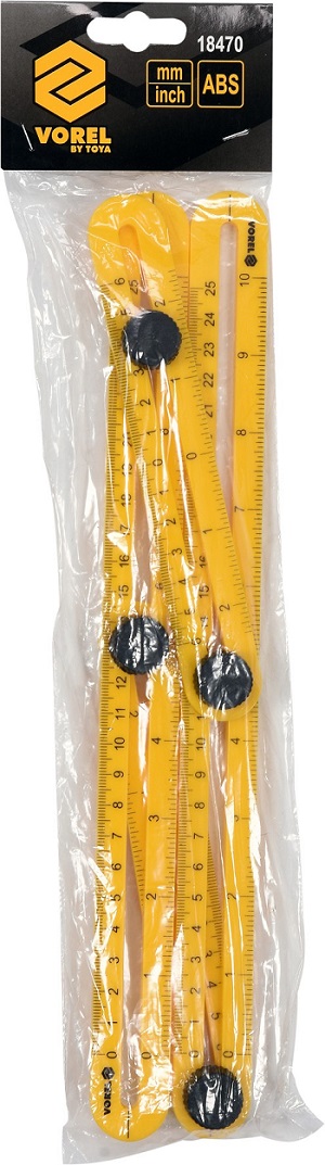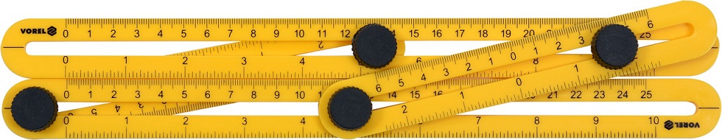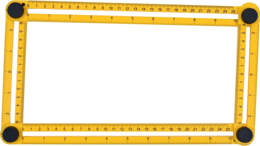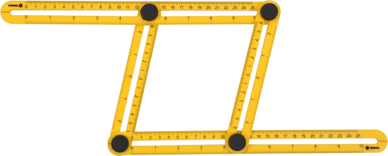 Cztery ramiona o zewnętrznych wymiarach – 310 x 175 x 25 mm połączone wkrętami blokującymi umożliwiają swobodne dopasowanie do mierzonych kątów, łatwe zablokowanie uzyskanego kształtu i przeniesienie wymiarów na przycinany materiał