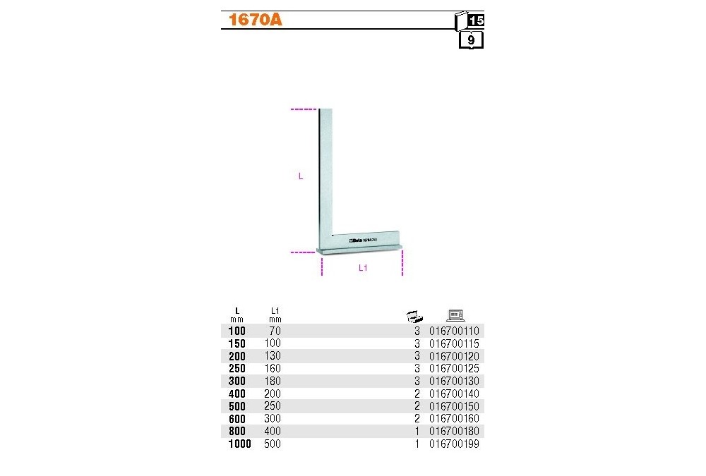 Kątownik powierzchniowy ze stopką, do prac niewymagających precyzji, model 1670a, 200mm