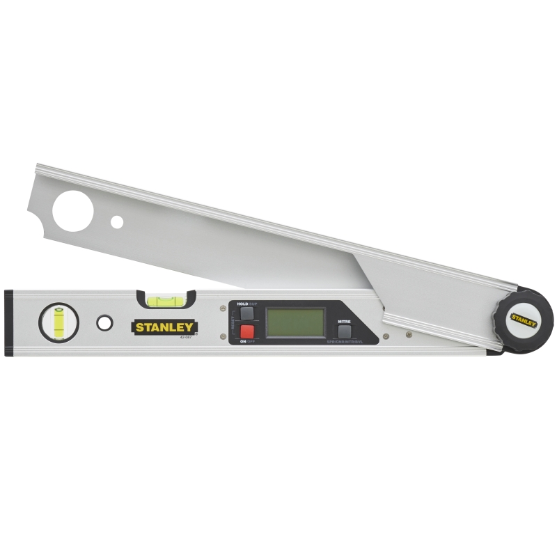 Kątownik z cyfrowym odczytem kąta Ekran LCD Pomiar kąta 0° do 180° Dokładność ± 0,1° Korpus wykonany z anodowanego profilu aluminiowego Ilość libelek 2