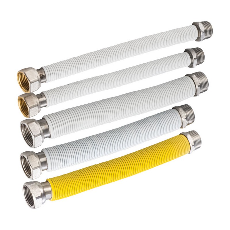 Zestaw montażowy składa się z 5 giętko-elastycznych, rozciągliwych węży: 1x przyłącze gazu (1/2”) i 4x przyłącza wodne (dwa o średnicy 1/2” i dwa o średnicy 3/4”). Węże stanowią komplet potrzebny do podłączenia kotła dwufunkcyjnego i umożliwiają wykonanie połączeń o długości między 150-300 mm. Zestaw wyposażony jest w odpowiednie uszczelki do wody i gazu.