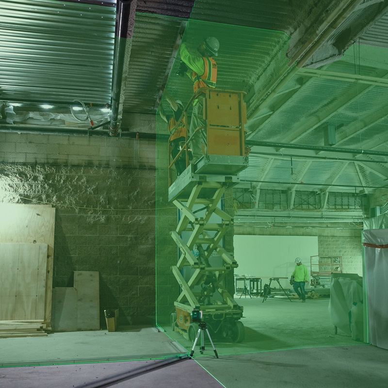 Wyświetla trzy pełne linie laserowe w zakresie 360° (poziome i pionowe)