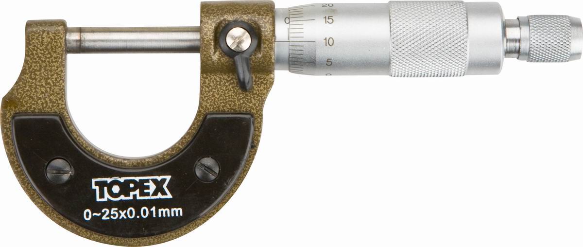 Mikrometr TOPEX (nr ref. 31C629) o długości 135 mm i zakresie pracy 0 – 25 mm.