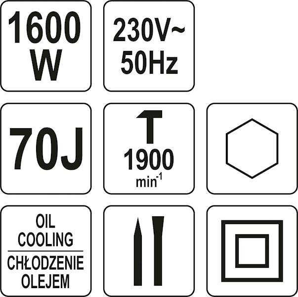 Opis produktu MŁOT WYBURZENIOWY 70J CHŁODZONY OLEJEM 1600W HEX