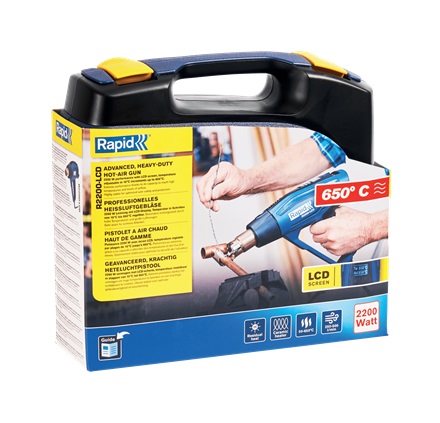 R2200-LCD to zaawansowana, wytrzymała opalarka z ekranem LCD, który pozwala na dokładne ustawienie temeperatury co 10°C, od 50°C do 650°C. W połączeniu z niezwykle dużą mocą 2200W, ten poziom precyzji pozwala na efektywne wykorzystanie opalarki do najbardziej wymagających zadań z różnorodnymi materiałami, przy jednoczesnym zmniejszeniu ryzyka ich uszkodzenia. Ponadto, R2200-LCD bardzo szybko osiąga porządaną temperaturę roboczą, optymalizując w ten sposób wydajność pracy. Zabezpieczenie przed przegrzaniem i wskaźnik ciepła resztkowego umożliwiają bezpieczną obsługę urządzenia, a diody LED pozwalają precyzyjnie ustawić temperaturę i przepływ powietrza. Bardzo stabilna podstawa do pracy na stole warsztatowym i ergonomiczny, miękki uchwyt sprawiają, że opalarka jest wygodna i łatwa w użyciu. Dostarczana w poręcznej walizce ochronnej do przechowywania i transportu, zawierającej skróconą instrukcję obsługi, która pomaga w prawidłowym użytkowaniu urządzenia.
