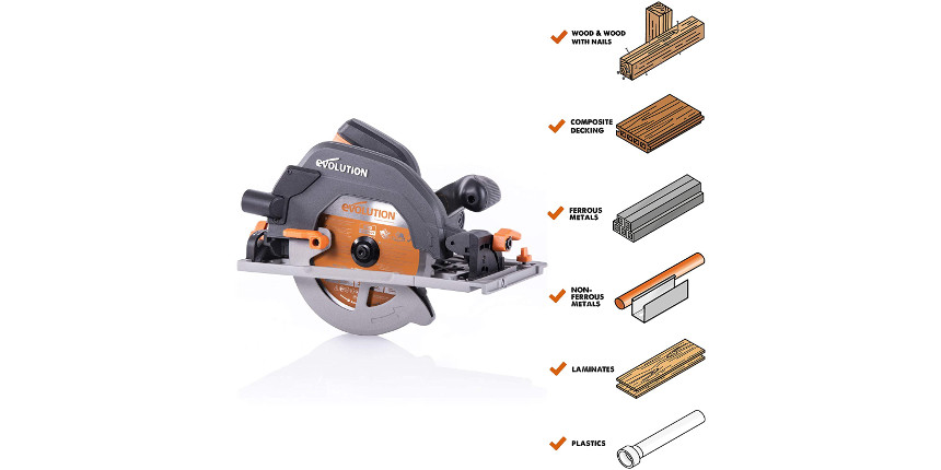 Wielozadaniowa pilarka Evolution R185CCSX+ wyposażona została w tarczę tnącą premium Evolution 185mm/20z, umożliwiającą przecinanie wielu materiałów (drewno, drewno z gwoździami, kształtowniki stalowe i aluminiowe). Głównymi wyznacznikami konstrukcji pilarki to moc i precyzja, zapewniające dokładność i niezawodność. Pilarka umożliwia wykonanie pracy w zdecydowanie krótszym czasie, niż inne tradycyjne pilarki, a dodatkowo zdecydowanie bezpieczniej i to przy użyciu tylko jednej, wielozadaniowej tarczy Evolution Power Tools. Dodatkowo pilarka wyposażona została w diody doświetlające LED zintegrowane z urządzeniem.