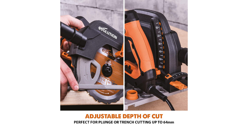 Precyzyjne cięcie z regulowaną głębokością cięcia wynoszącą 64 mm – idealne do cięcia rowków.