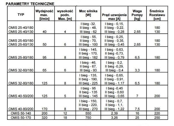 Pompy serii OMIS przeznaczone są pompowania wody pitnej, mogą pracować w obiegach wodnych, w których temperatura wody nie może przekraczać 120°C i nie może być niższa niż 5°C.