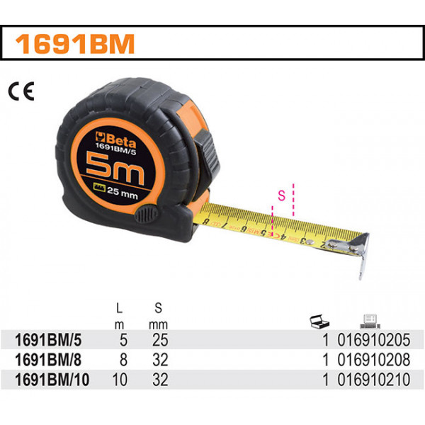 Przymiar zwijany z obudową abs taśma stalowa klasa ii Beta 1691BM 5MX32mm