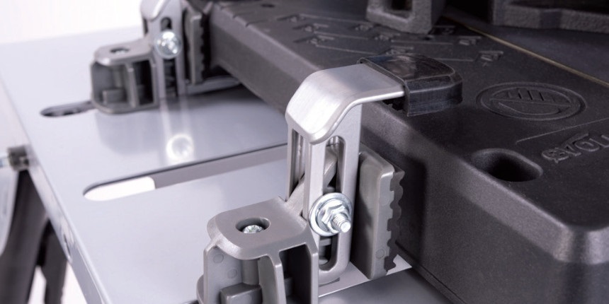 Wsparcie dla każdej przecinarki i dowolnego materiału. Stolik posiada wbudowany ogranicznik (zderzak) do szybkiego przeprowadzania powtarzalnych cięć materiału.