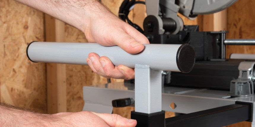 Wysuwane w lewą i prawą stronę ramiona umożliwiające podparcie przecinanego przedmiotu zapewniają lepsze mocowanie elementu, a tym samym przeprowadzenie procesu cięcia w bezpieczny sposób.
