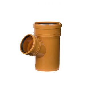 Trójnik 110/110/67° Symbol: T16 Średnica: 110/110 mm Grubość ścianki: 3,4 Ilośc w opakowaniu: 20 Waga szt: 0,44 Kolor: Pomarańczowy Norma: PN EN 185