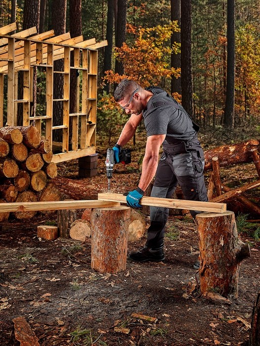 Ergonomiczny kształt rękojeści i zwarta konstrukcja wiertarko-wkrętarki pozwalają na wygodną pracę także w trudnych warunkach.